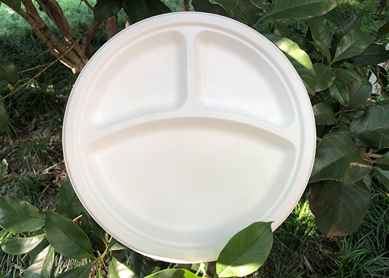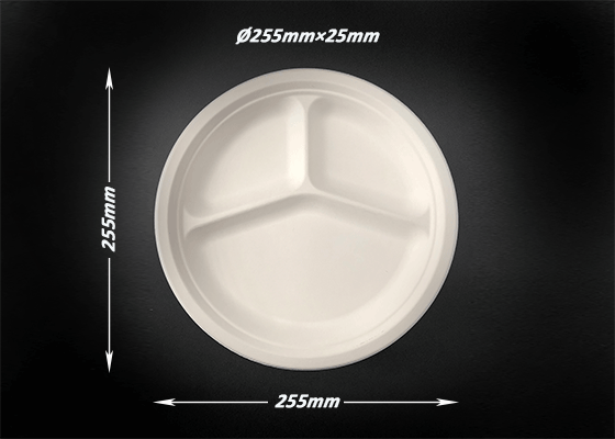 泰国工厂大量现货供应:纸浆模塑餐具; 10寸三格圆盘