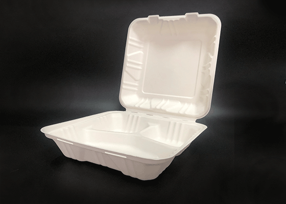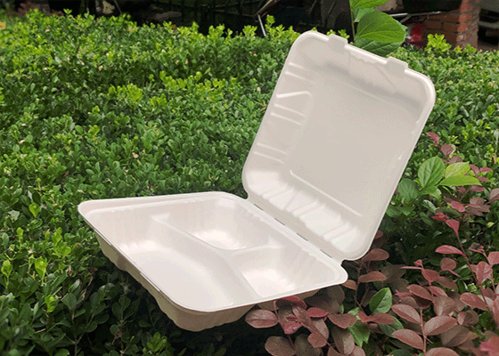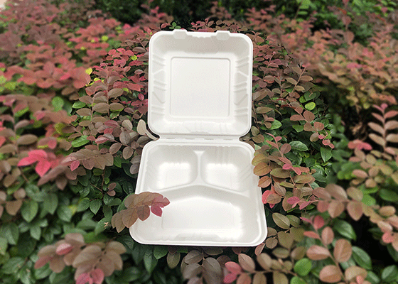 泰国工厂大量现货供应:纸浆模塑餐具; 9寸三格锁盒 1,名称:9寸三格锁盒。